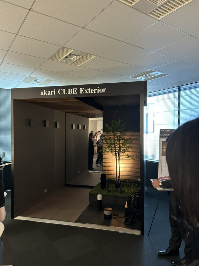 会場にはたくさんの照明器具が展示されており、実際の使用シーンをイメージしやすいように、コイズミさん独自のボックス型の展示で演出されていました。